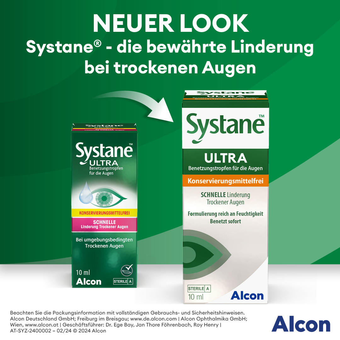 - Mit Systane® ULTRA ohne Konservierungsmittel Benetzungstropfen erhältst du schnelle Linderung, wenn du sie am meisten brauchst